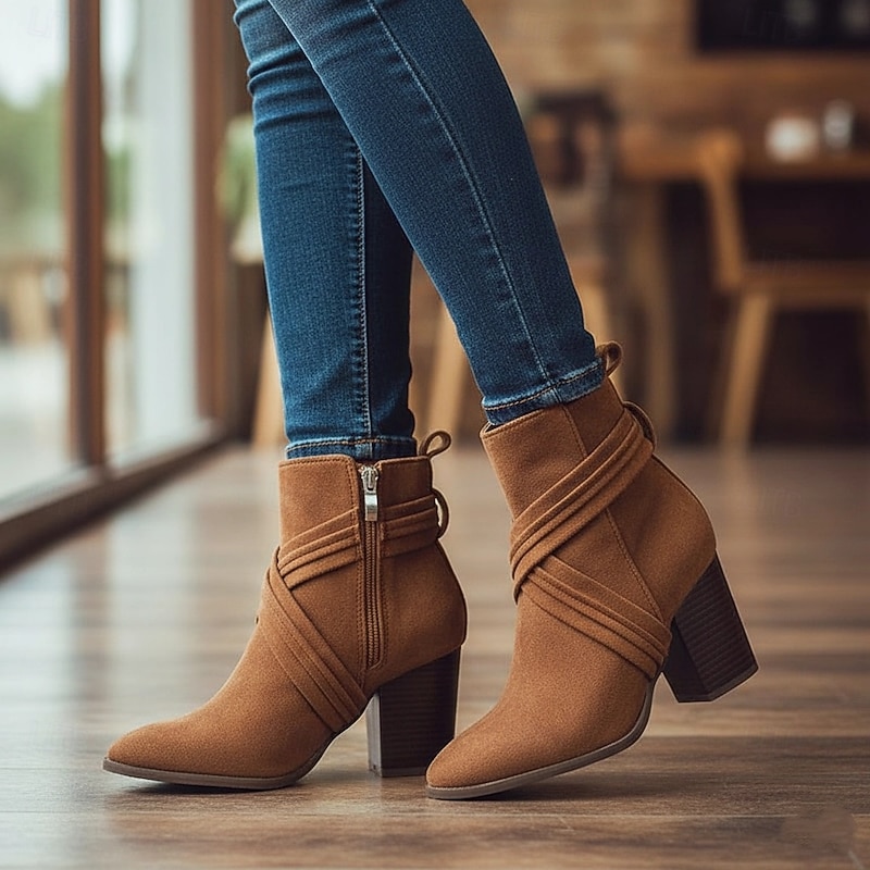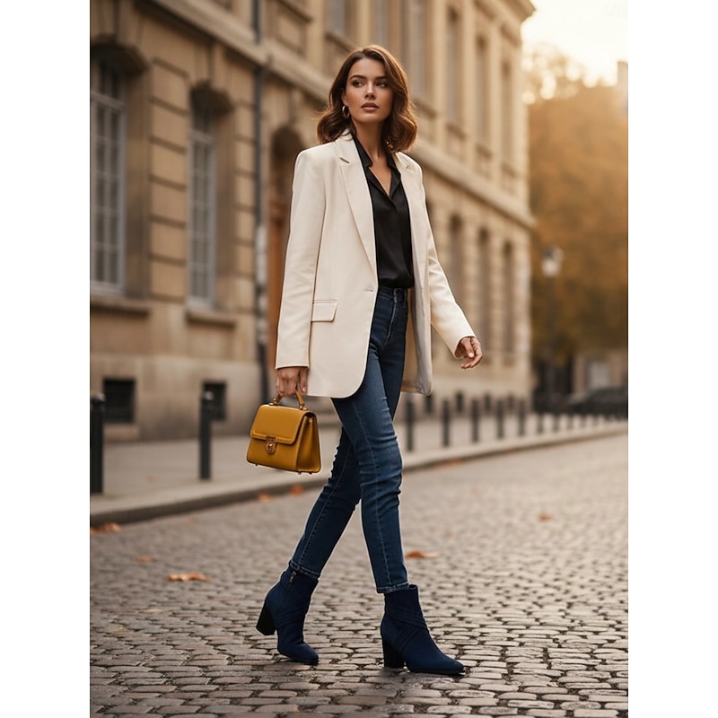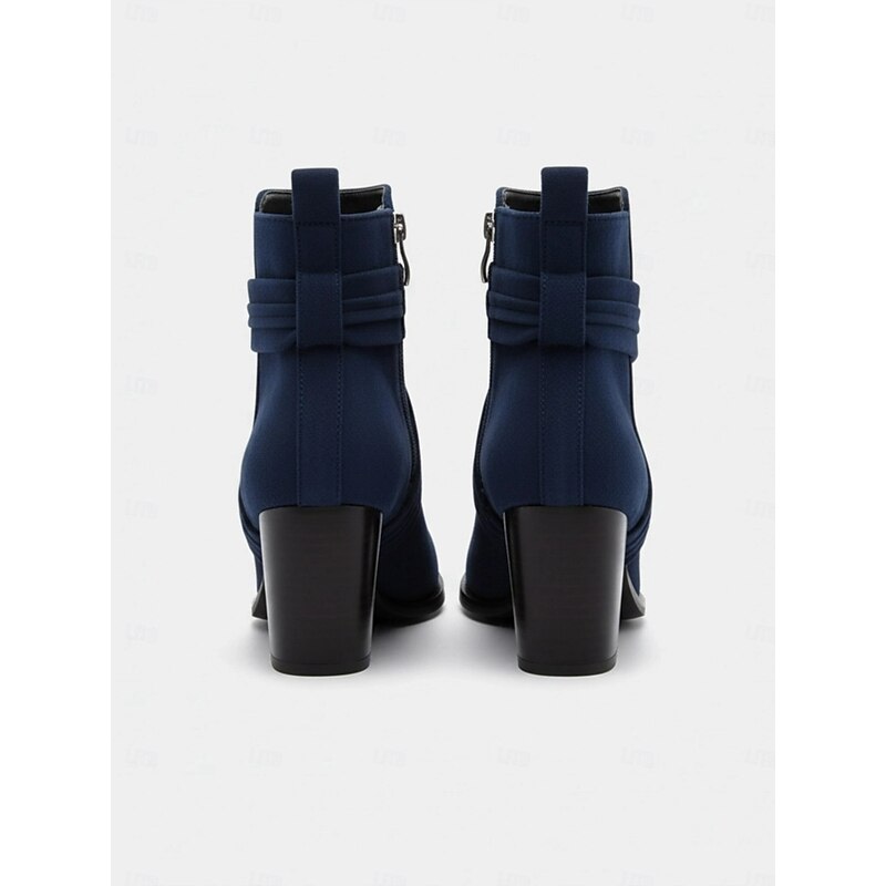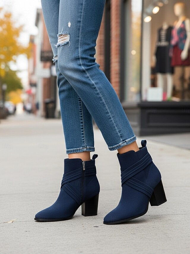 Women's Blue Suede Ankle Boots – Stylish Block Heel Short Booties with Side Zipper for Casual Fall and Winter Outfits 14