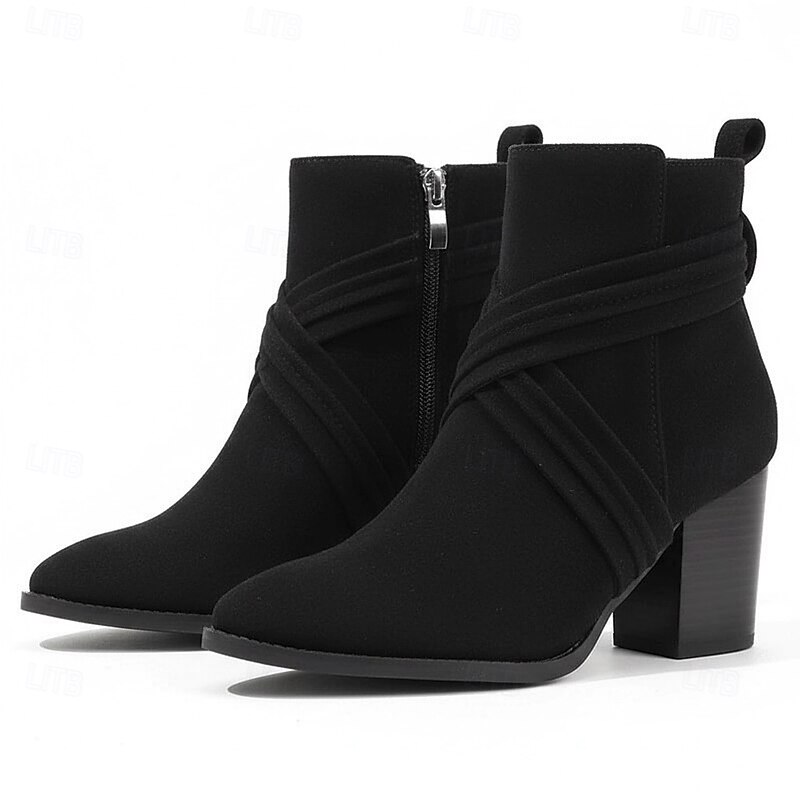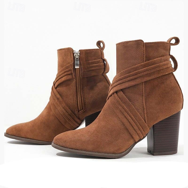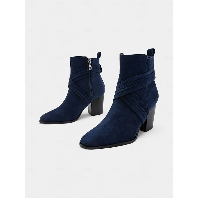 Women's Blue Suede Ankle Boots – Stylish Block Heel Short Booties with Side Zipper for Casual Fall and Winter Outfits 1