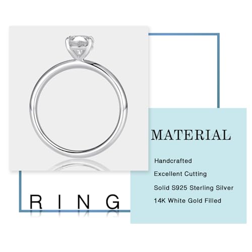• DESIGN: This beautiful Moissanite Solitaire Ring features 1 1.5CT 6*8MM Oval Cut center stone with a plain 14K White Gold Vermeil Solid S925 Sterling Silver band that measures about 1.8mm wide. Petite and delicate, this classic four-prong moissanite solitaire engagement ring has a rounded inside edge for increased comfort.