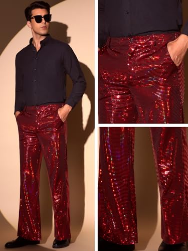 More information about Lars Amadeus Sequins Pants for Men's Metallic Wide Leg Glitter Bell Bottom Flared Pants