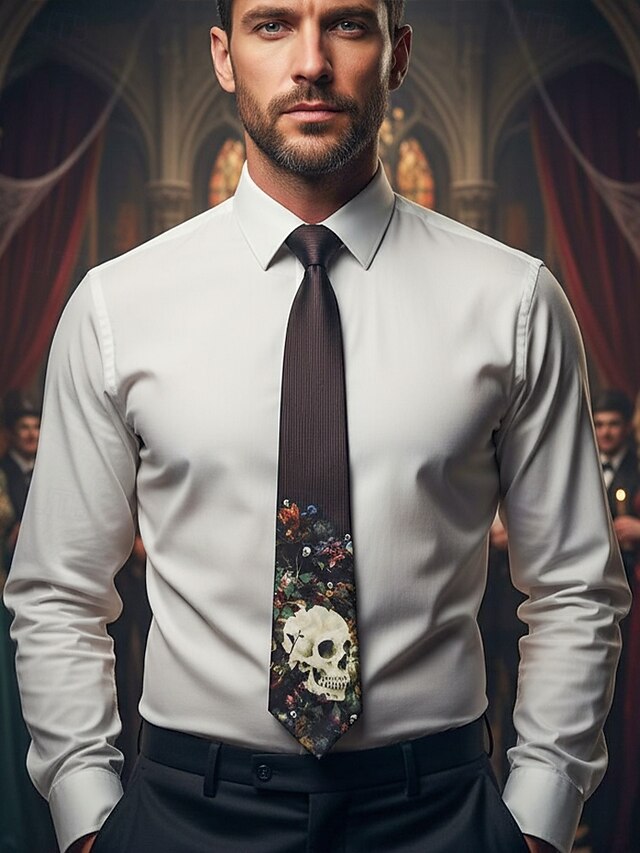 $11.99 - Men's Halloween Novelty Necktie with Skull, Pumpkin and Cat Prints – Fun Party Costume Dress Tie for Festivals and Cosplay 2025. Shop for cheap Halloween Accessories online? Buy at lightinthebox.com on sale today!