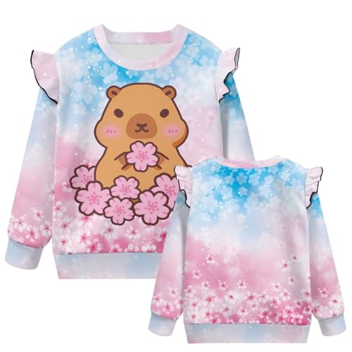 Girls Fashion Sweatshirts Ruffle Sleeves Girl Long Sleeve Pullover Tops Comfortable Toddlers Crew Neck Sweatshirt 7
