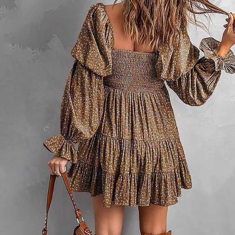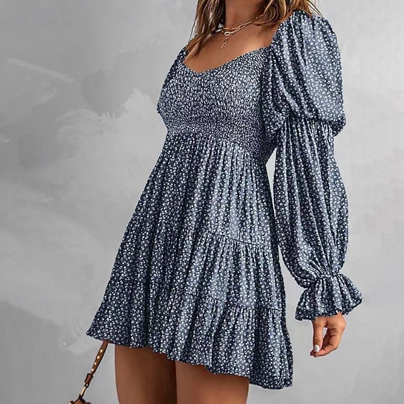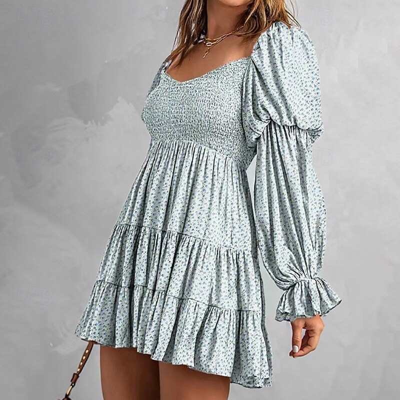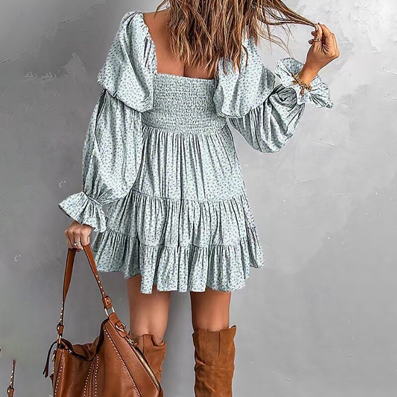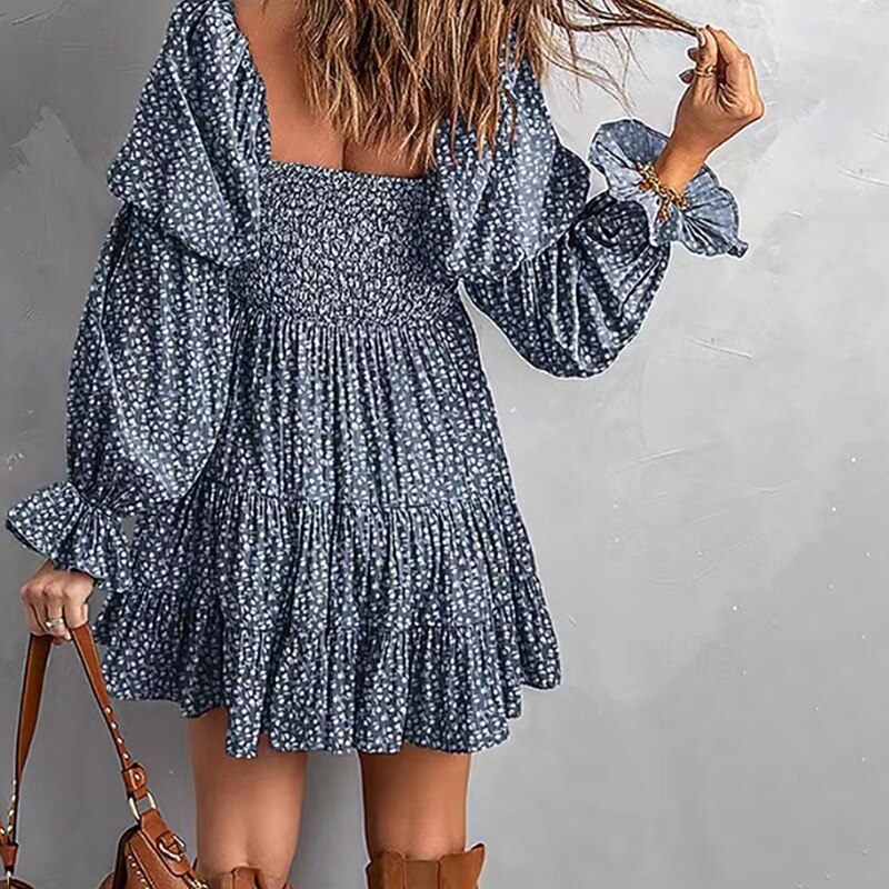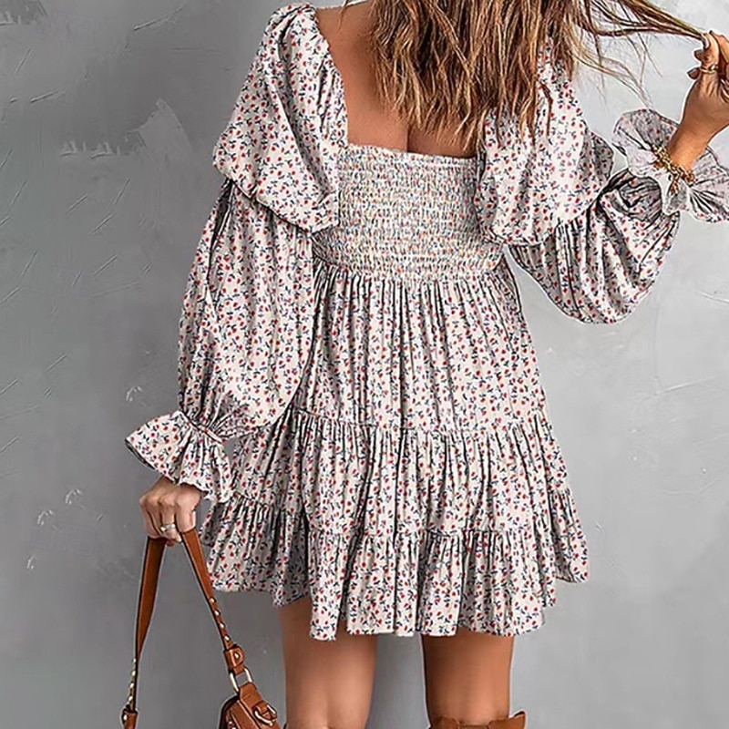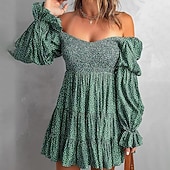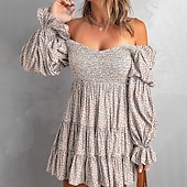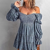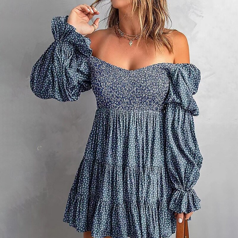 More information about Women's Mini Dress Floral Dress Boho Dress Print Dress Western Dress Classic Modern Outdoor Vacation Holiday Regular Fit Flower Long Sleeve Off Shoulder Blue Brown Green Apricot Summer