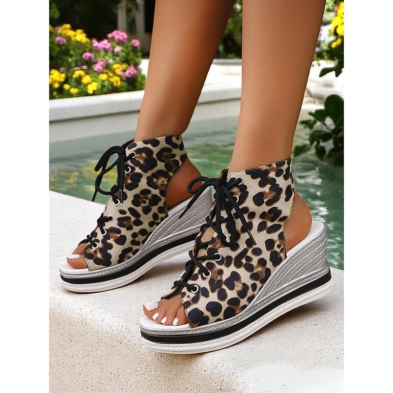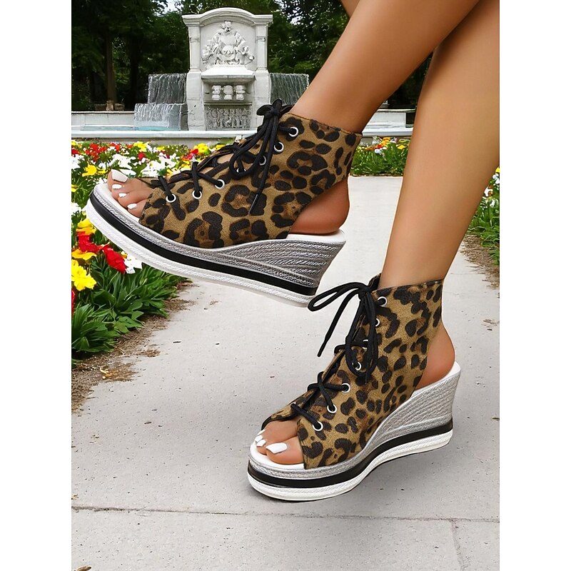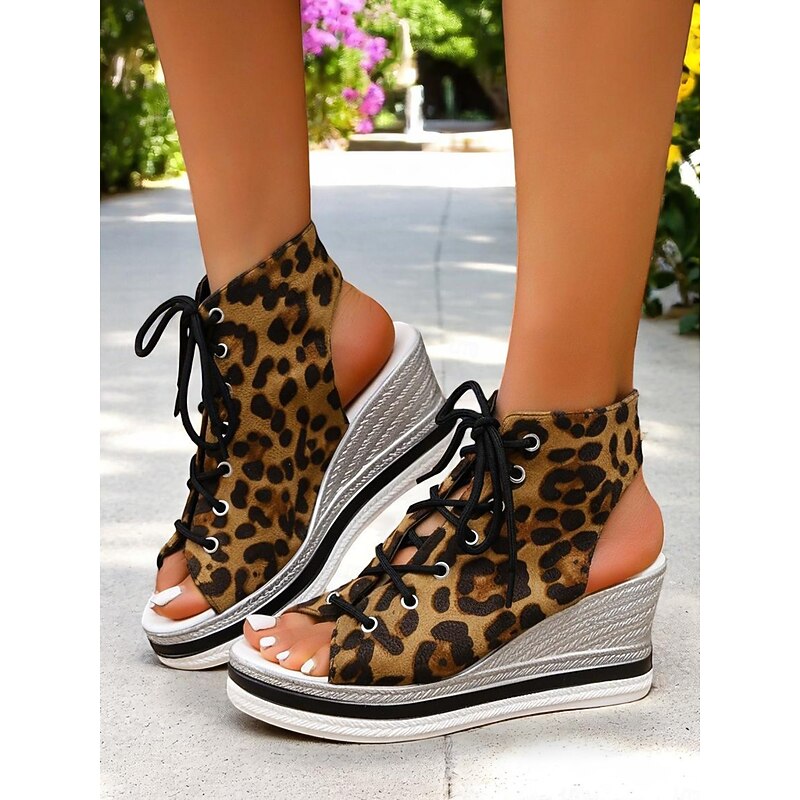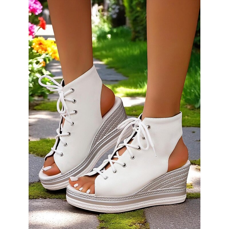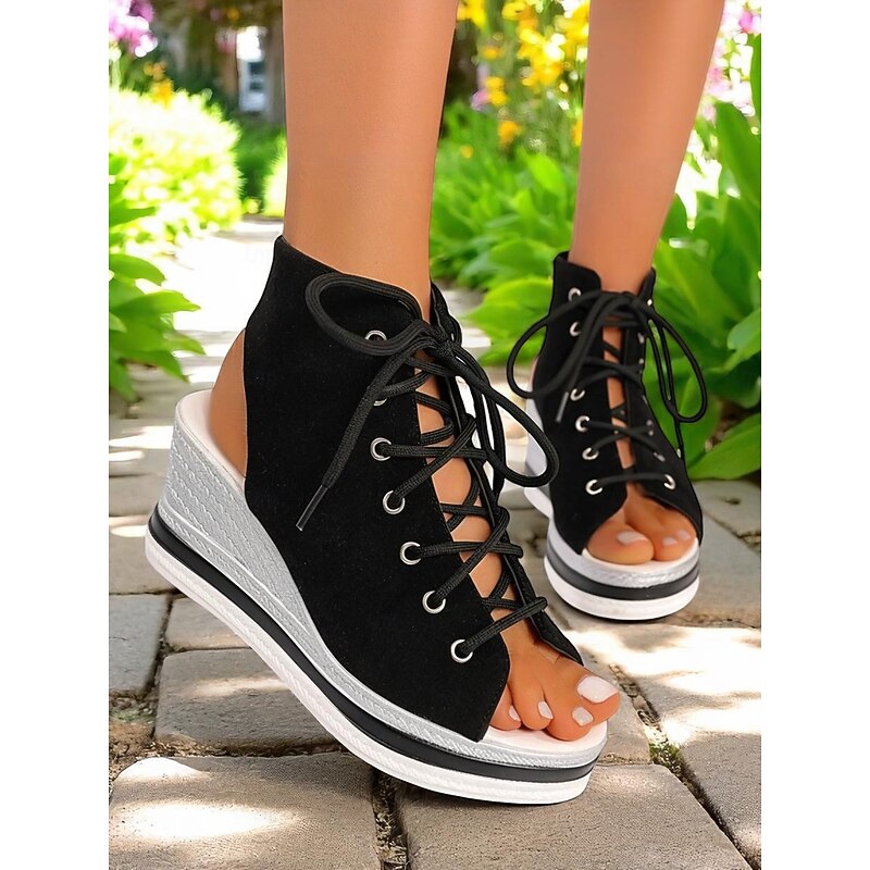 Women's Lace-Up Denim Wedge Sandals, Fashion Peep-Toe Summer Shoes, Perfect for Poolside, Brunch Outings and Seaside Cafés 21