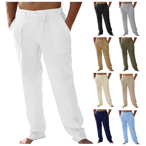 HOT ! Men's Linen Beach Pants Elastic Waist Drawstring Trousers Solid Color Loose Trousers Summer Lightweight Yoga Pants