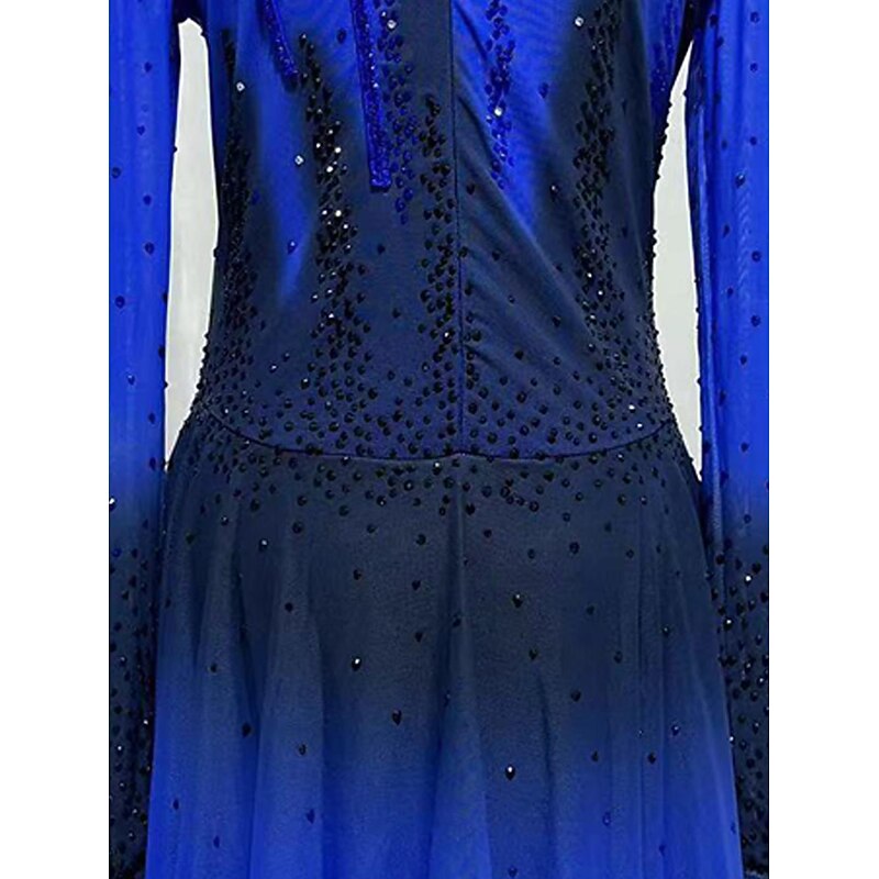 More information about Figure Skating Dress Women's Girls' Ice Skating Skirt Dress Dark Blue Patchwork Mesh Spandex Lace Micro-elastic Training Skating Wear Crystal / Rhinestone Long Sleeve Figure Skating