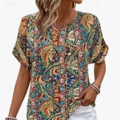 More information about Women's Shirt Floral Stylish Modern Long Sleeve V Neck Regular Tops Daily Holiday Print Rainbow Summer
