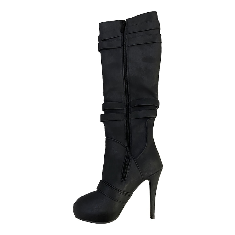 More information about Women's Beige Knee-High Stiletto Boots with Buckle Straps and Side Zipper, Sexy High Heel Boots for Fashionable Night Out