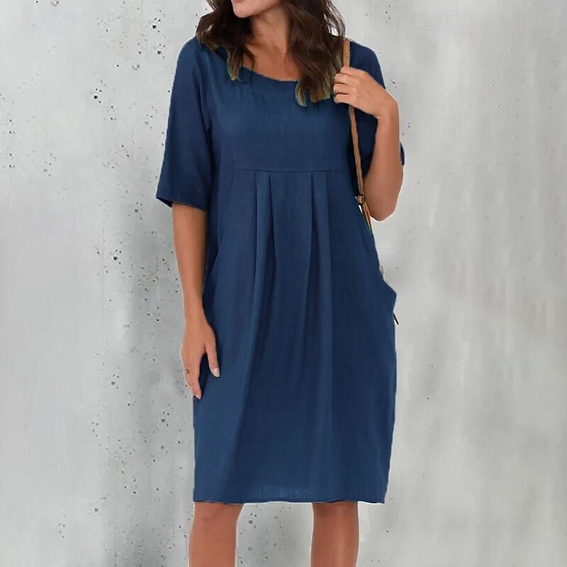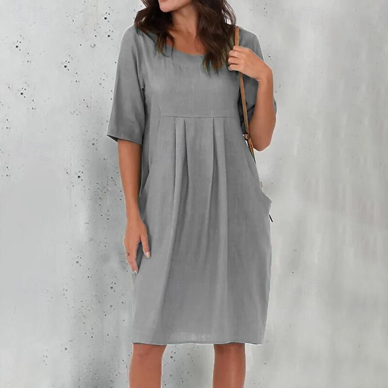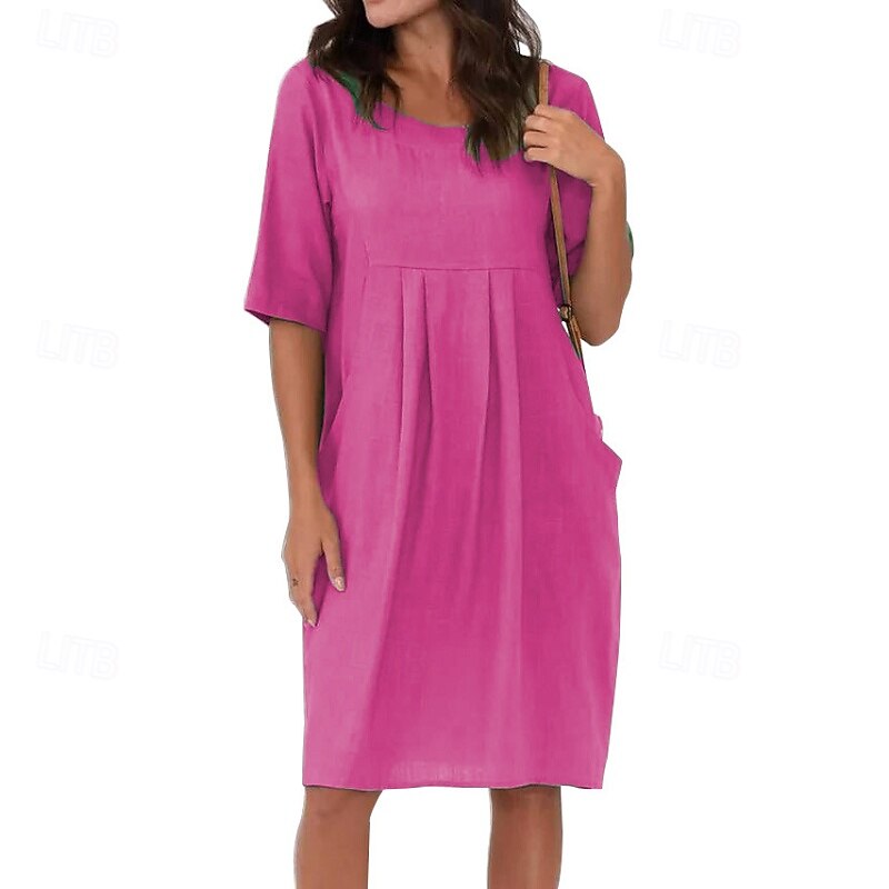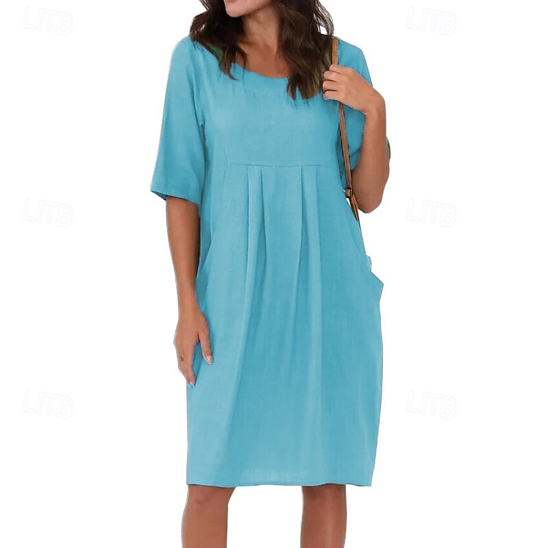 More information about Women's Mini Dress Linen-Inspired Dresses Cotton Linen Dress Fashion Basic Modern Outdoor Daily Holiday Regular Fit Plain Short Sleeve Crew Neck Blue Green Rose Red Gray Summer
