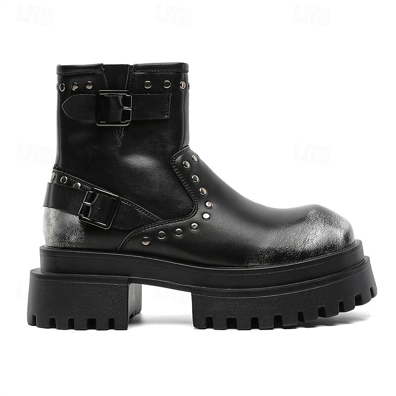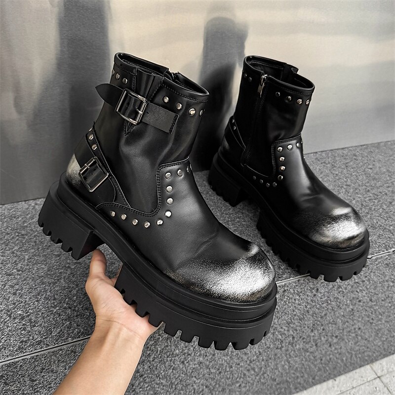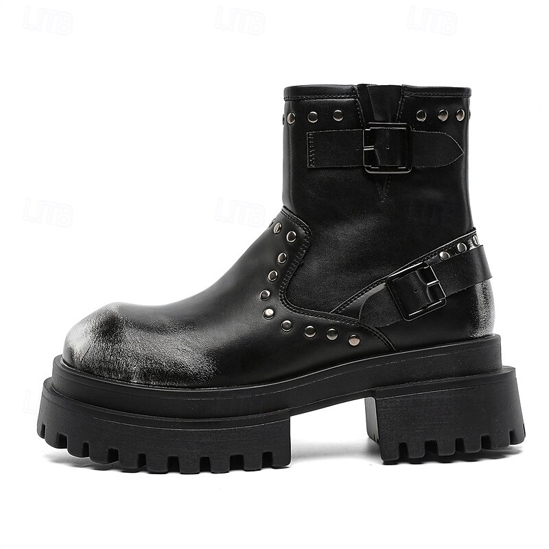 $94.99 - Men's Black Chunky Buckle Ankle Boots – Punk Rock Platform Combat Boots for Gothic Fashion & Fall Streetwear 2025. Shop for cheap Shoes For Men online? Buy at lightinthebox.com on sale today!