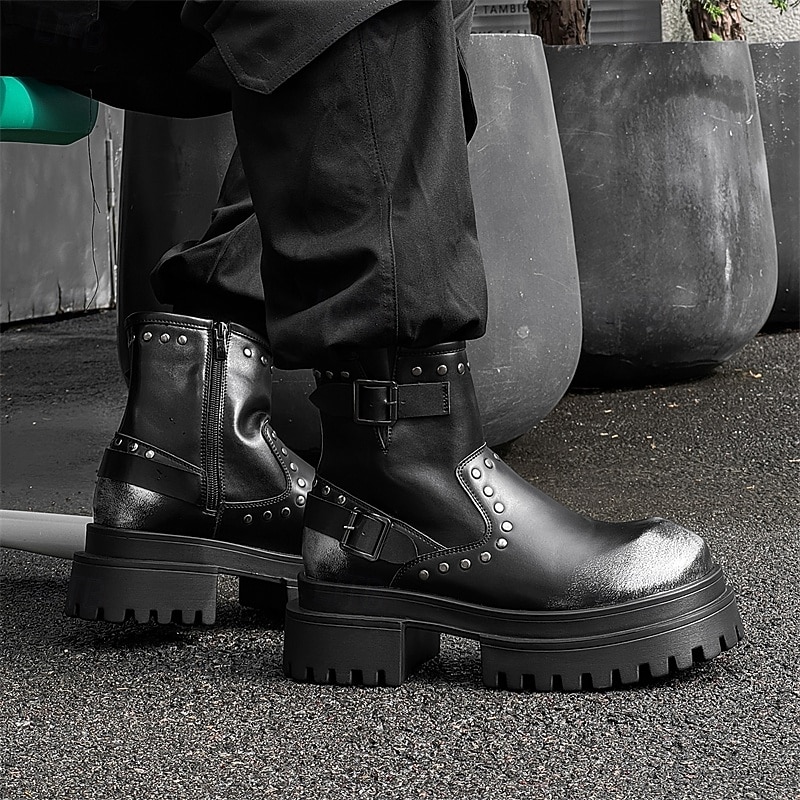 Men's Black Chunky Buckle Ankle Boots – Punk Rock Platform Combat Boots for Gothic Fashion & Fall Streetwear 9