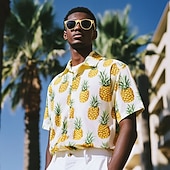 More information about Men's Fruit Pineapple Summer Hawaiian Shirt Button Up Shirt Aloha Shirt Short Sleeve Hawaiian Resort Vacation Holiday Beach Wear Summer Spring Turndown 3D Print Collared Shirts White