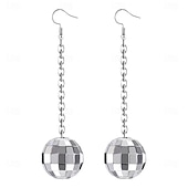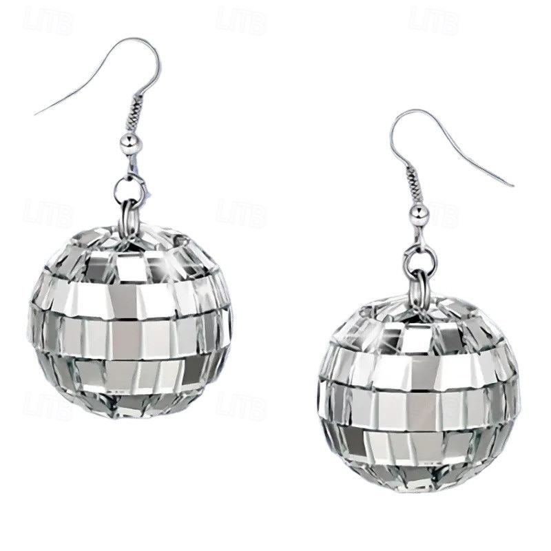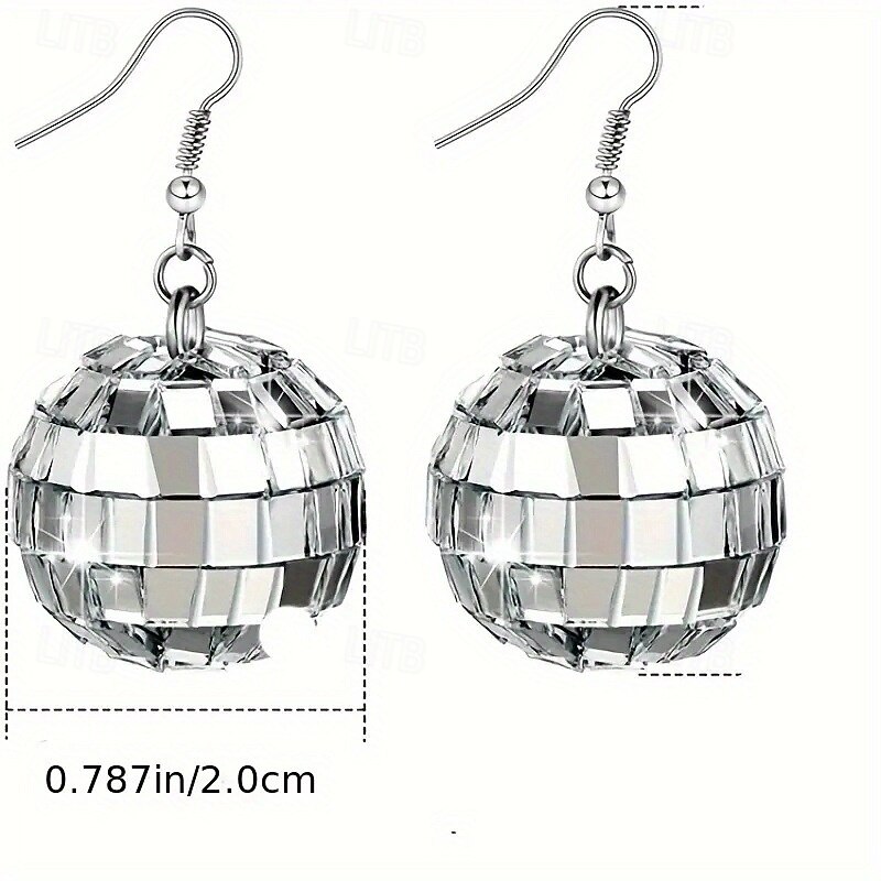 Highlights [Fabric]: Crafted from high-quality acrylic, these hoop earrings feature a lustrous finish that mimics the reflective allure of silver-tone materials. The exquisite craftsmanship ensures durability while providing a lightweight experience for long-lasting comfort. [Fit]: These earrings are designed with a classic hoop style that complements a variety of face shapes. The secure hook-style fastening ensures they stay comfortably in place throughout the day and night. [Design Highlights]: Embrace the unique geometrical and spherical "disco-ball" design embellished with mirrored tiles that captivate light, offering a dazzling display. As part of the Totem Series, these earrings present a modern twist with artistic flair, perfect for making a statement. [Occasions]: Ideal for parties, work events, and a wide array of social gatherings, these earrings add an element of glamour and sophistication to any ensemble. They are perfect for moments when you want to shine and stand out. [Size Range]: Available in various styles and colors, including Silver, Style 2 Gold, Style 2 Silver, Style 3 Silver, and Style 3 Gold. These options provide flexibility to match different personal styles and preferences, ensuring a suitable choice for every woman.
