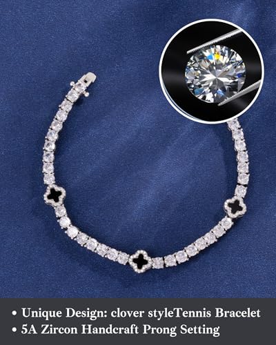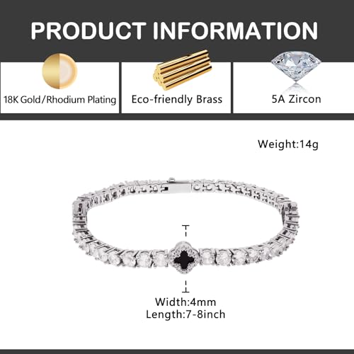 More information about LuxeFlex 4mm Iced Out Four Leaf Tennis Bracelet, White Gold Plated with 5A Zircon Stones, Handmade exquisite Hip Hop Jewelry, Perfect Unisex Gift