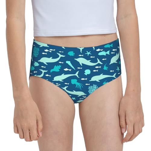 Silhuette Of Dolphins And Sealife Girls' Underwear Soft Cotton Little Girls Panties Comfort Briefs 6