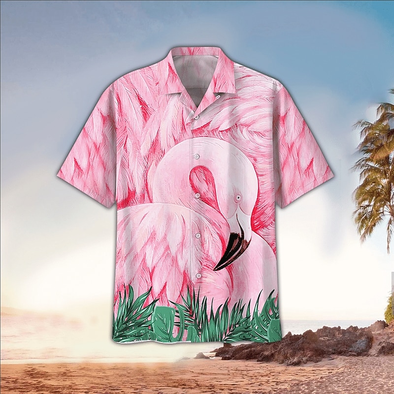 More information about Men's Flamingo Tropical Shirt Summer Hawaiian Shirt Aloha Shirt Short Sleeve Shirt Turndown Tropical Fashion Hawaiian Casual Hawaiian Holiday White Light Green Pink S M L