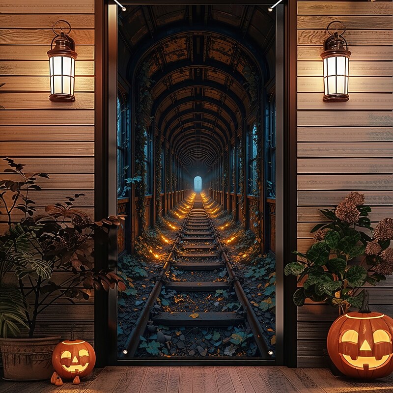 Halloween Door Cover Outdoor Banners Skeleton 3D Psychedelic Dark Punk Gothic Style Party Outdoor Shooting Backgrounds Front Door Wall Porch Home Decor 15