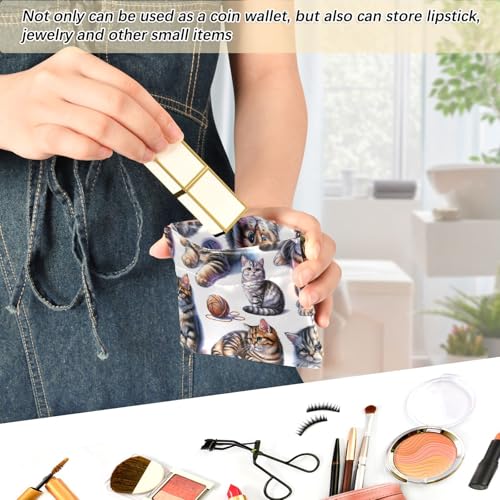 Cute Cat Watercolor Coin Purse Leather Pouch Change Purse, Squeeze Coin Pouch for Cards, Keys & Lipsticks, Unisex 5