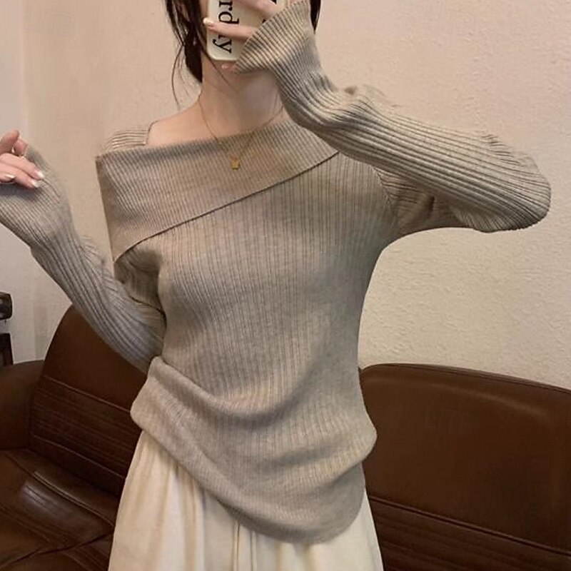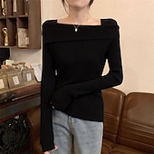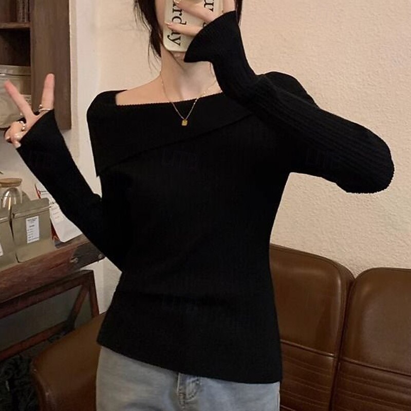 More information about Women's Sweater Pullover Streetwear Casual Solid Color Off Shoulder Knitted Long Sleeve Regular Tops Knit Outdoor Holiday Going out Black White Fall Winter