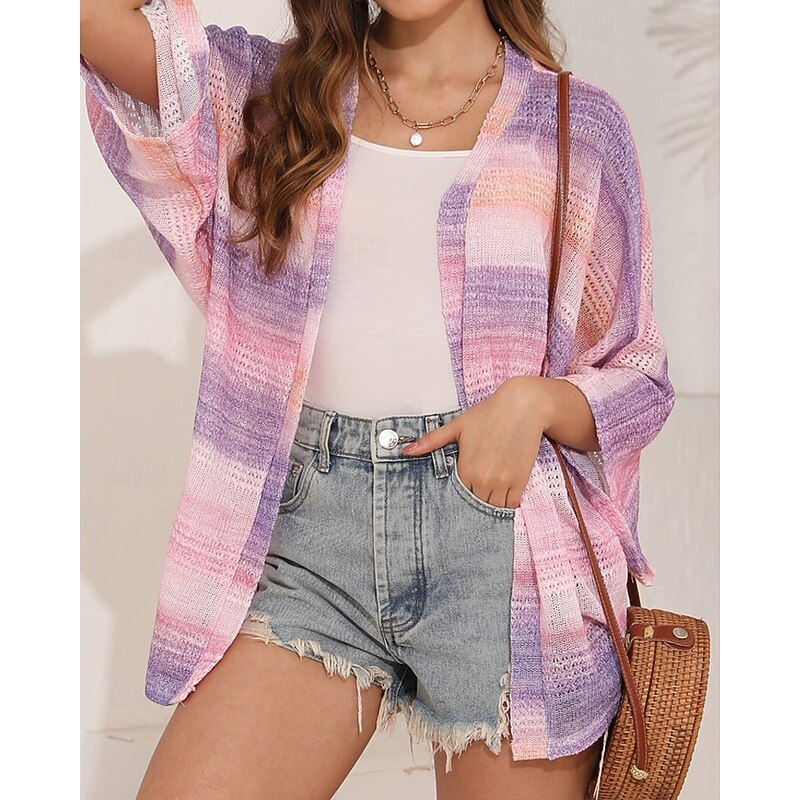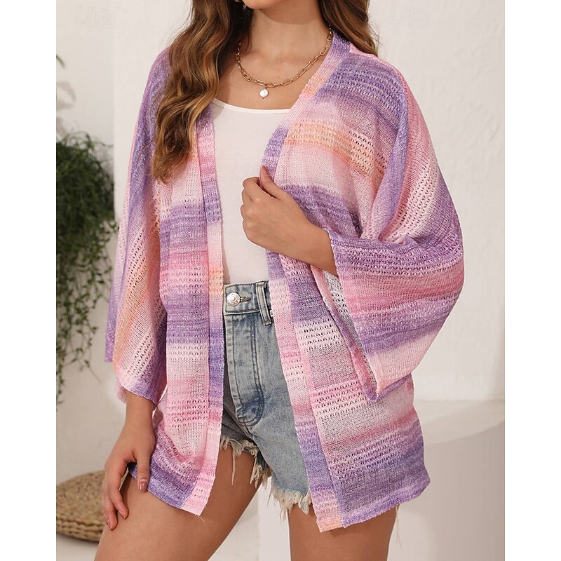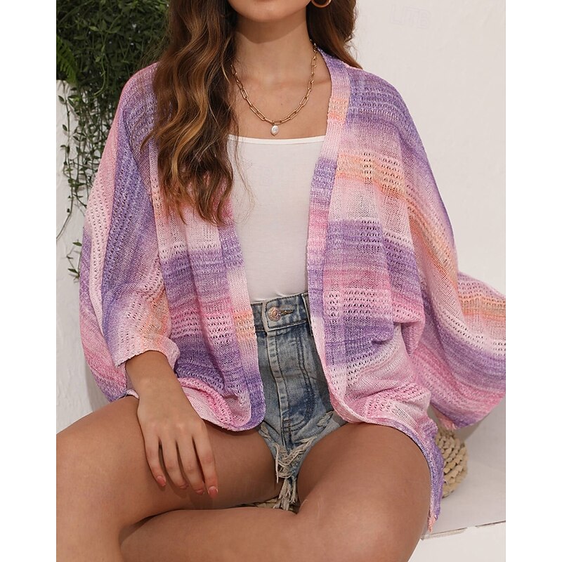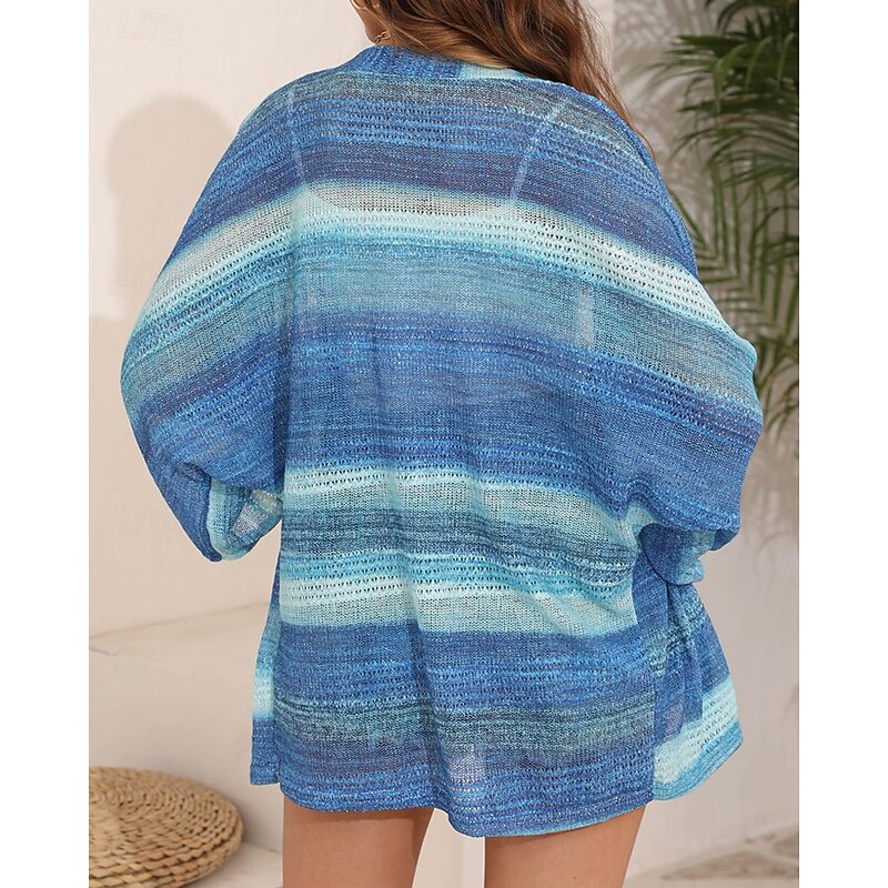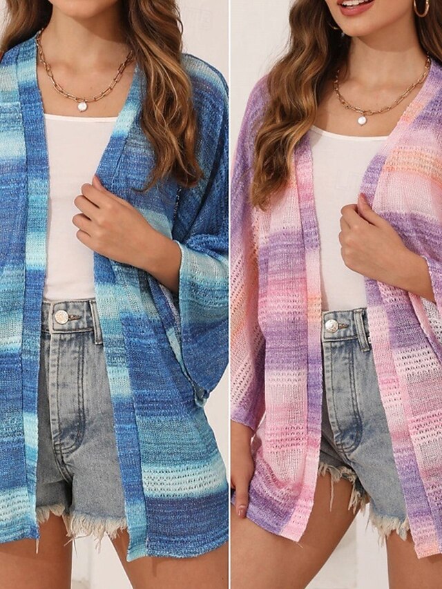 More information about Women's Sweater Cardigan Fashion Streetwear Daily Striped Ribbed Open Front Knitted Long Sleeve Regular Tops Knit Holiday Going out Weekend Blue Purple Spring Fall