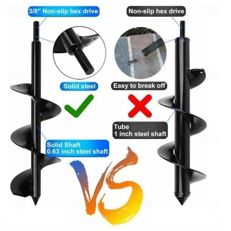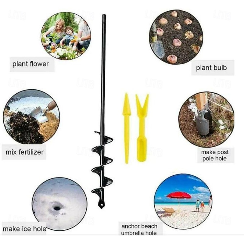 Auger Drill Bit Garden Spiral Hole Drill,Easy Planter Bulb & Bedding Plant Augers -Earth Auger Bit Post Or Umbrella Hole Digger For 3/8" Hex Drive Drill 2