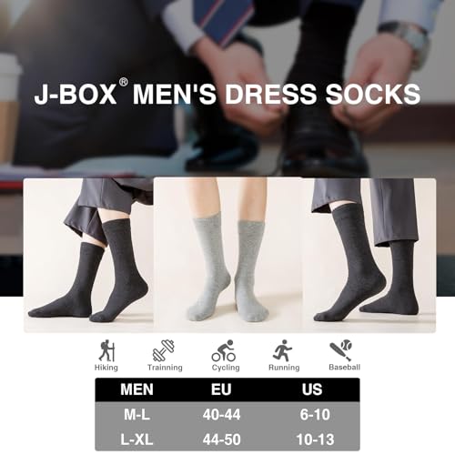 J-BOX Men's Cotton Crew Socks-Wicking Black Dress Socks, Anti-Odor&Breathable for Business/Casual, Size 9-15 4