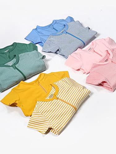 Teach Leanbh Baby Boys Girls 2-Pack Romper Jumpsuits Cotton 2 Way Zipper Short Sleeve Footless Sleep and Play 3-24 Months 5