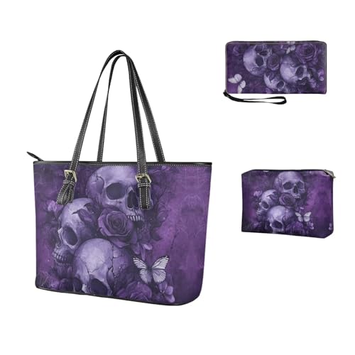 Tote Bag with Zipper Womens Leathe Handbags and Clutch Wallet Set Fashion Daypack 3