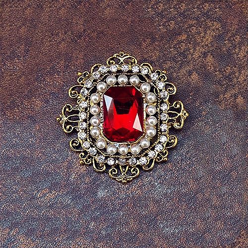 HOT ! Antique Rhinestone Brooch Pin for Women Girls Gold Tone Vintage Baroque Rectangle Crystal Shell Pearl Boho Victorian Style Brooches Lapel Pins Elegant Wedding Christmas Festival Ornament Jewelry Gift