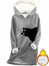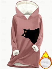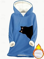 More information about Women's Pullover Hoodie Sweatshirt Graphic Animal Cat Warm Casual Sherpa Fleece Long Sleeve Hooded Long Tops Street Dailywear Casual Print Fleece Lined Dark Pink Blue Gray Fall Winter