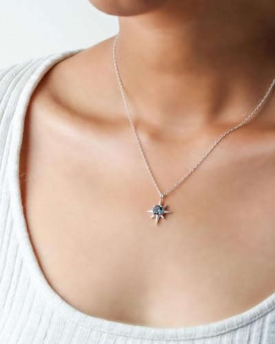 Sterling Silver North Star Pendant with a Birthstone, Birthstone Gift For Her, Silver Jewelry with 18 Inch Chain 5
