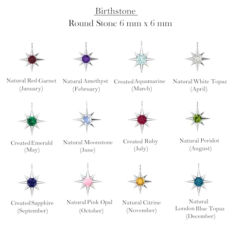 More information about Sterling Silver North Star Pendant with a Birthstone, Birthstone Gift For Her, Silver Jewelry with 18 Inch Chain