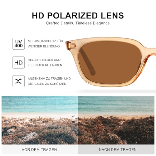 • POLARIZED CLARITY FOR GLARE-FREE VISION:Experience unparalleled visual comfort with polarized lenses that eliminate harsh reflections from water, roads, and other surfaces. Ideal for driving, poolside lounging, or exploring the outdoors, they enhance color contrast and definition for sharper, safer vision in any setting.