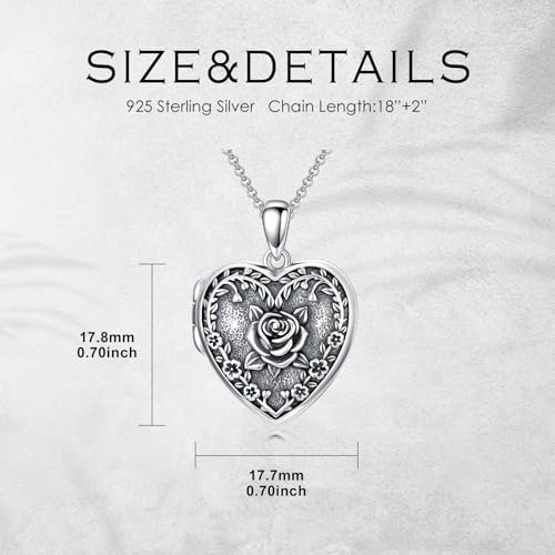 • Material: Made from high quality 925 sterling silver, this heart locket necklace ensures durability. The sterling silver construction not only gives it a beautiful appearance but also provides resistance to tarnish, ensuring long time wear and maintaining its luster over time.