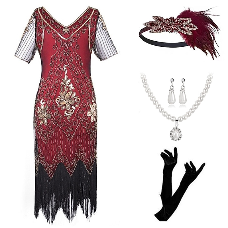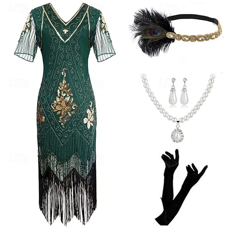 $57.99 - Retro Vintage Roaring 20s 1920s Flapper Dress Outfits Accessories Set The Great Gatsby Wedding Guest Sequins Tassel Fringe Sequin Tassel V Neck Fancy Dress Women's Halloween Carnival Masquerade 2025. Shop for cheap Outfits online? Buy at lightinthebox.com on sale today!