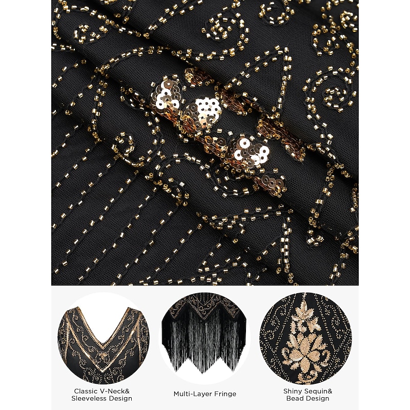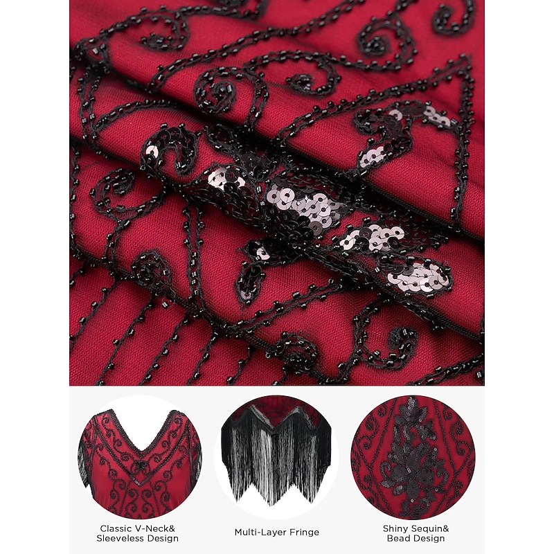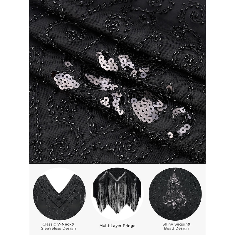 More information about Retro Vintage Roaring 20s 1920s Flapper Dress Outfits Accessories Set The Great Gatsby Wedding Guest Sequins Tassel Fringe Sequin Tassel V Neck Fancy Dress Women's Halloween Carnival Masquerade