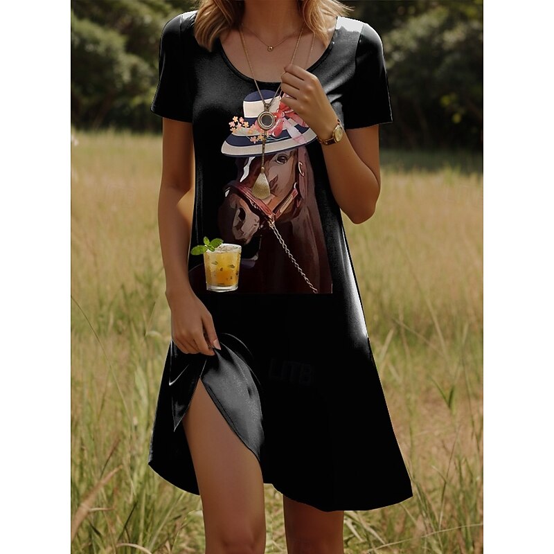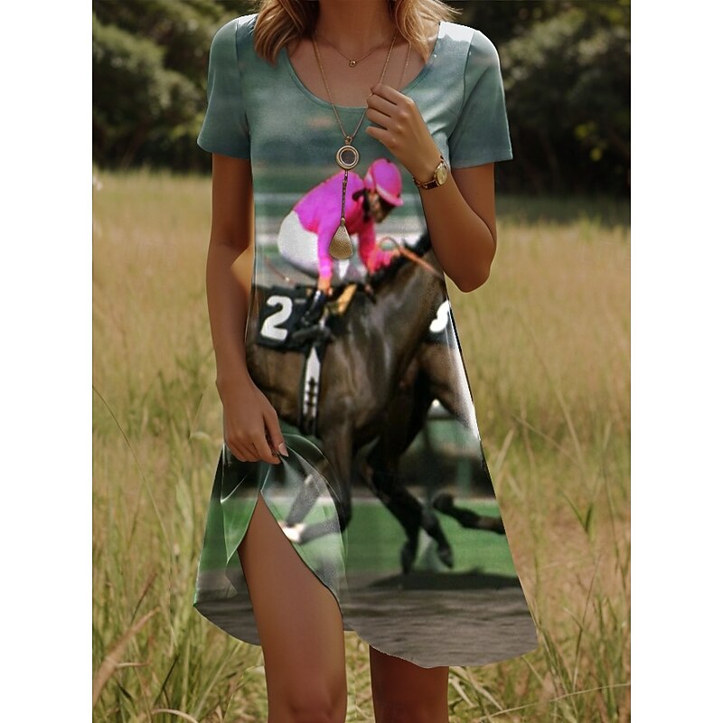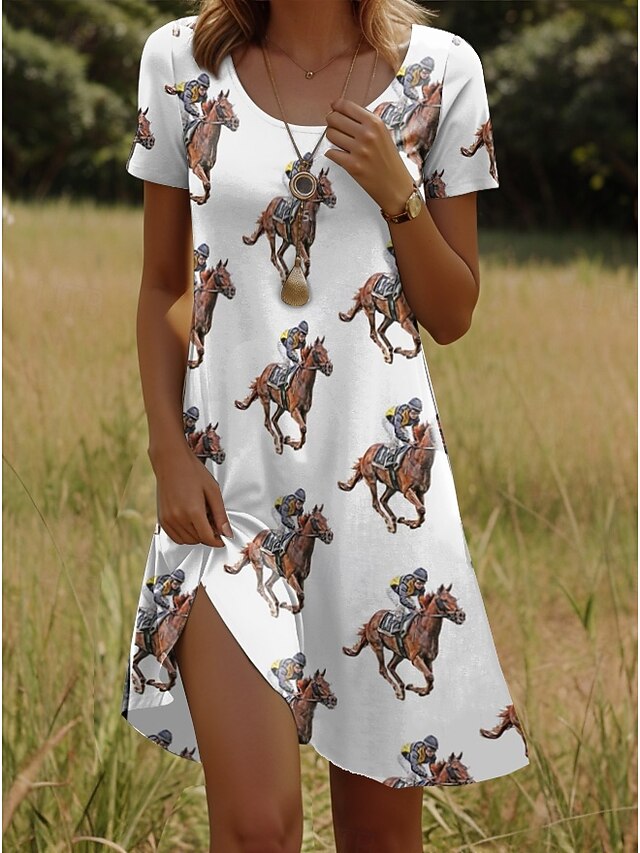 More information about Kentucky Derby Women's Mini Dress A Line Dress T Shirt Dress Tee Dress Summer Dress Casual Daily Regular Fit Graphic Animal Short Sleeve Crew Neck White Summer Spring
