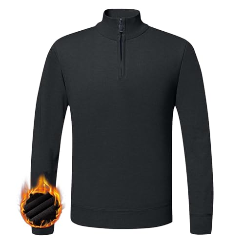 Fleece Lined Sweater Men Mock Neck Quarter Zip Knitted Sweater Casual Warm Basic Sweaters for Fall and Winter 1