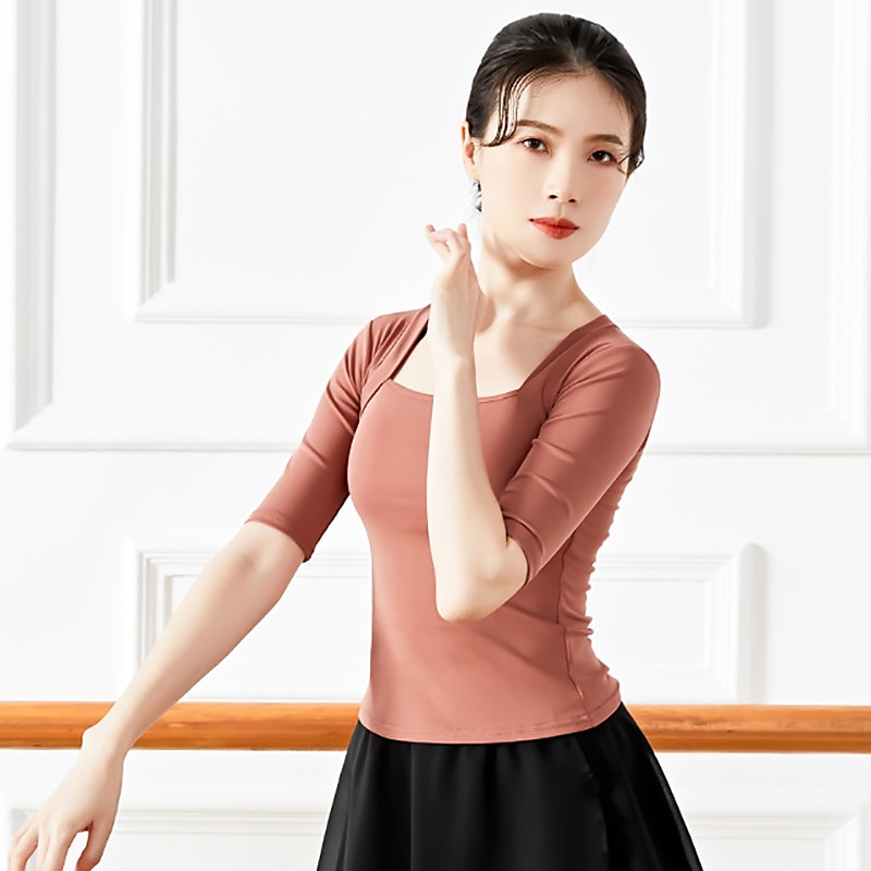 Activewear Top Pure Color Women's Performance Training Half Sleeve High Cotton Blend 1