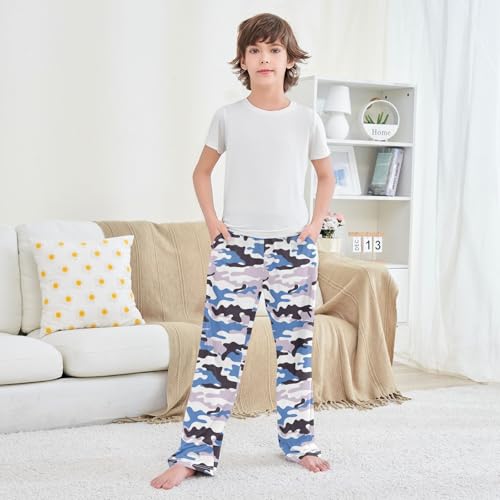 ZZXXB Blue Camouflage Boys Long Pants Soft Trousers Elastic Waist Kids Lounge Bottoms with Pockets S-XL 3