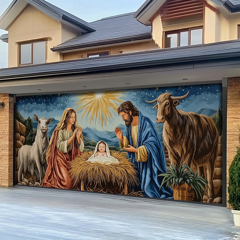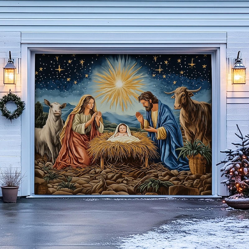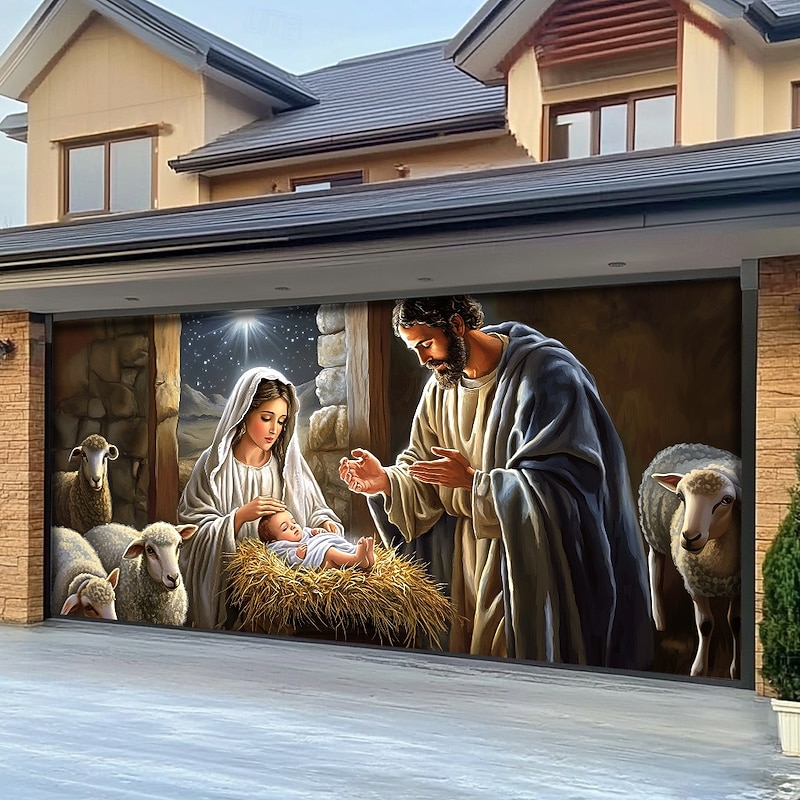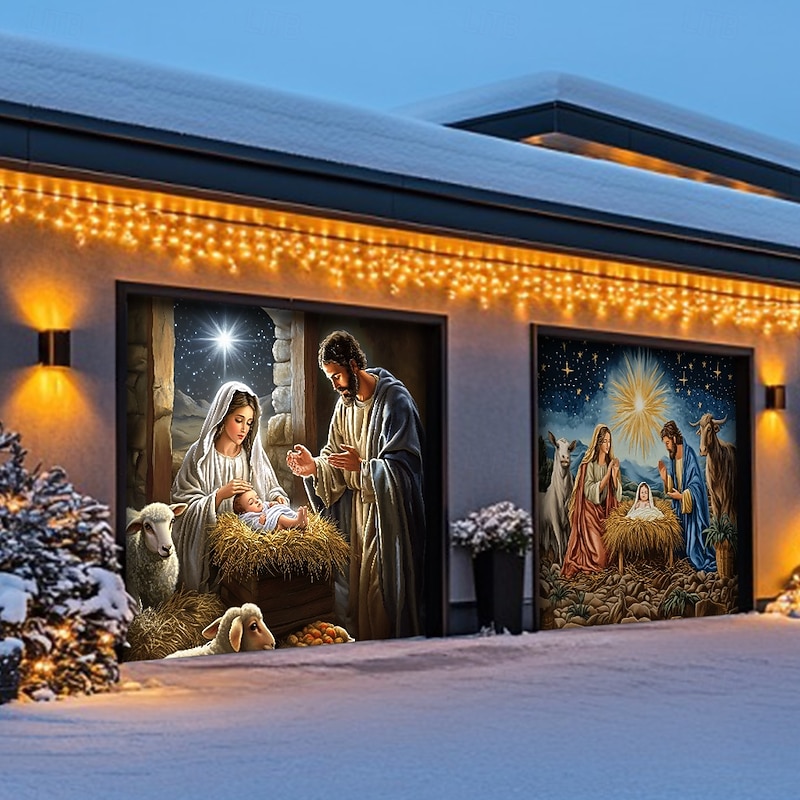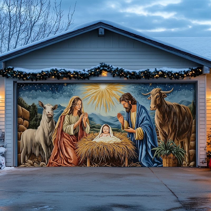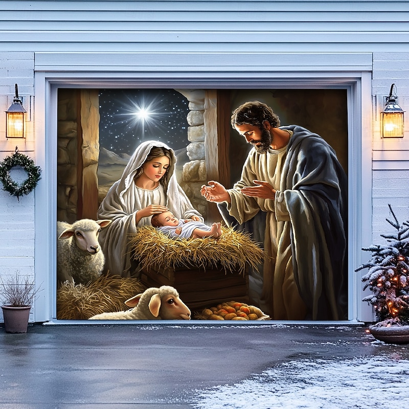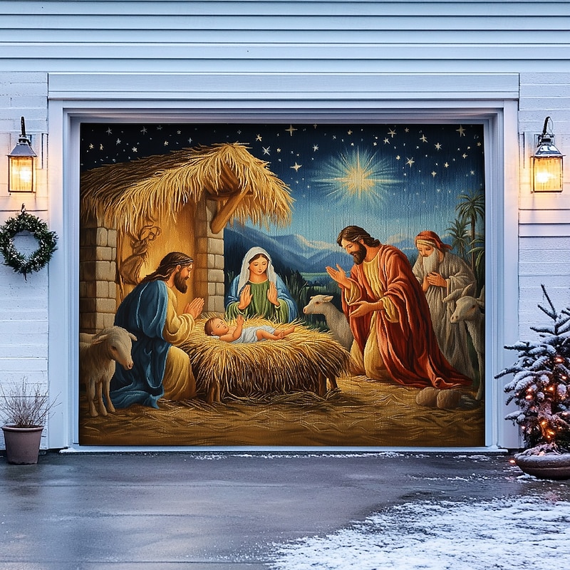 Celebrate the season with our Nativity Scene Garage Door Cover for a heartfelt and festive holiday entrance!