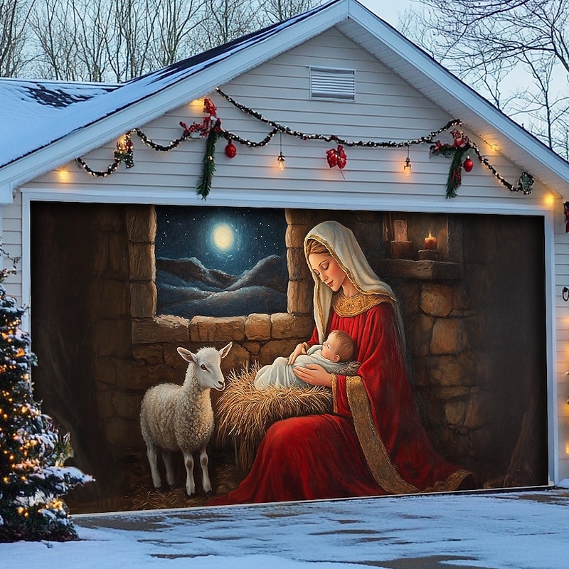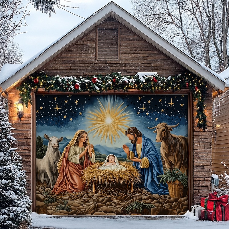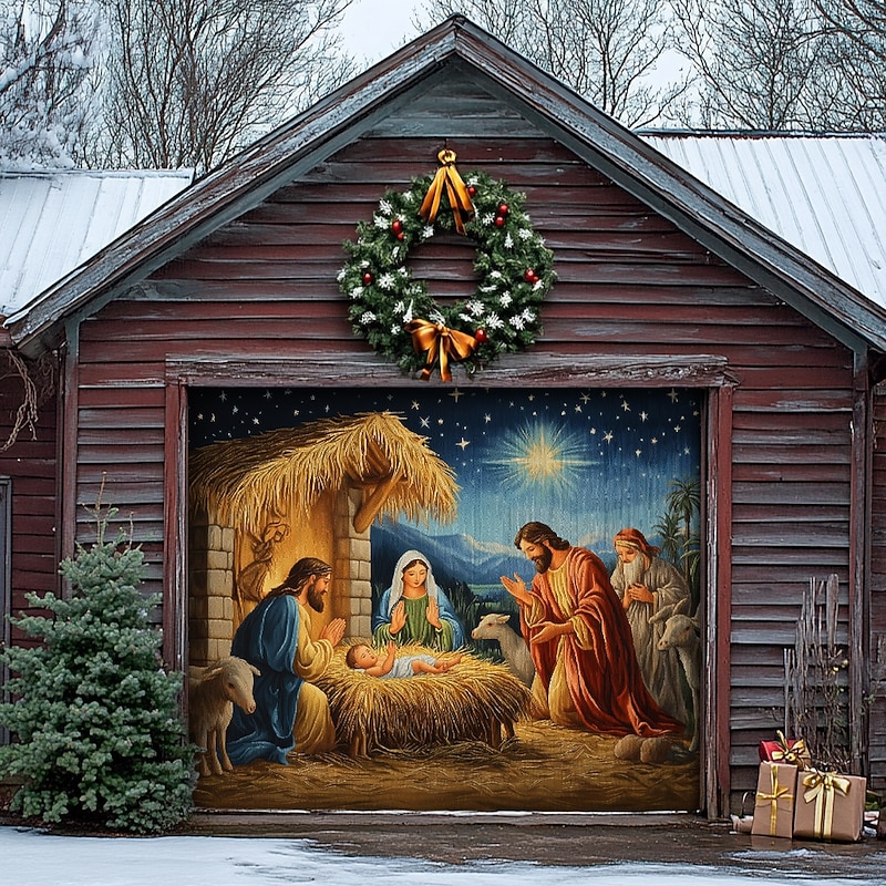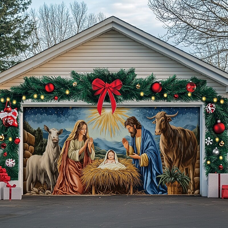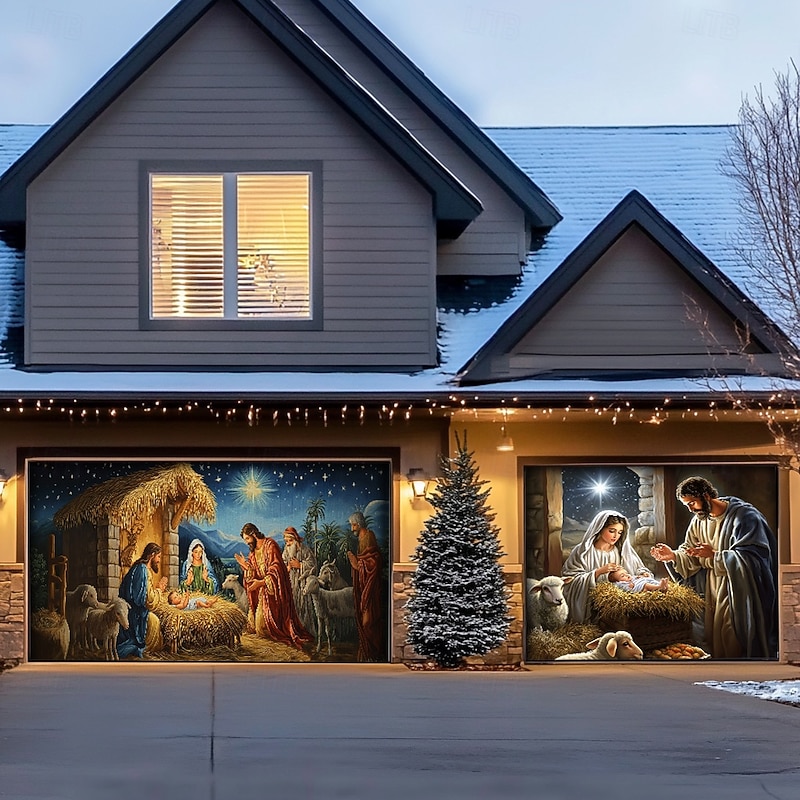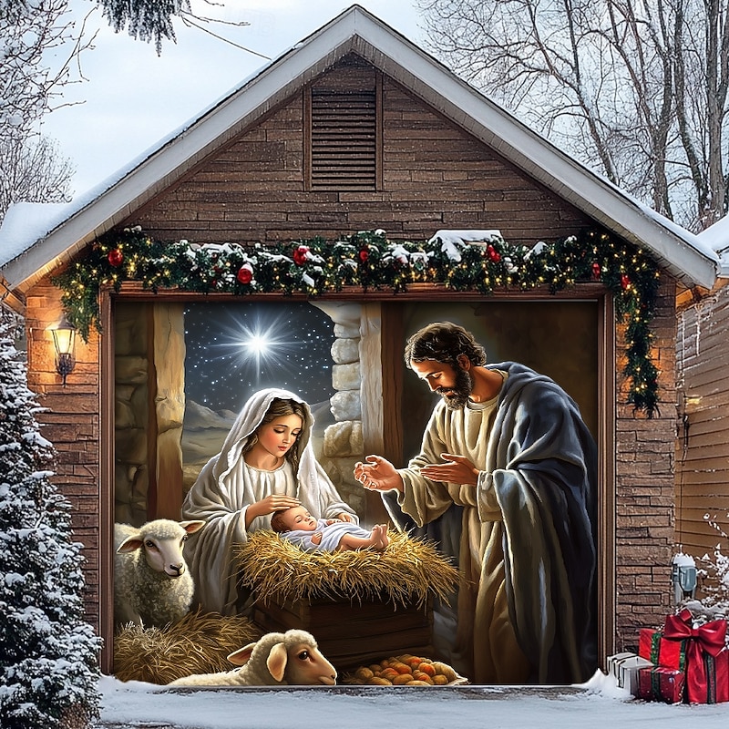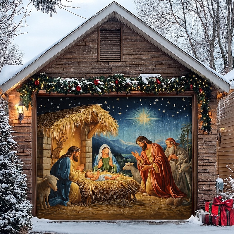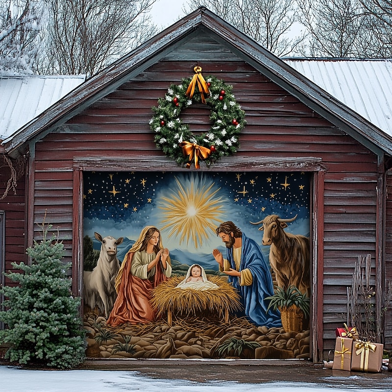 Celebrate the season with our Nativity Scene Garage Door Cover for a heartfelt and festive holiday entrance!