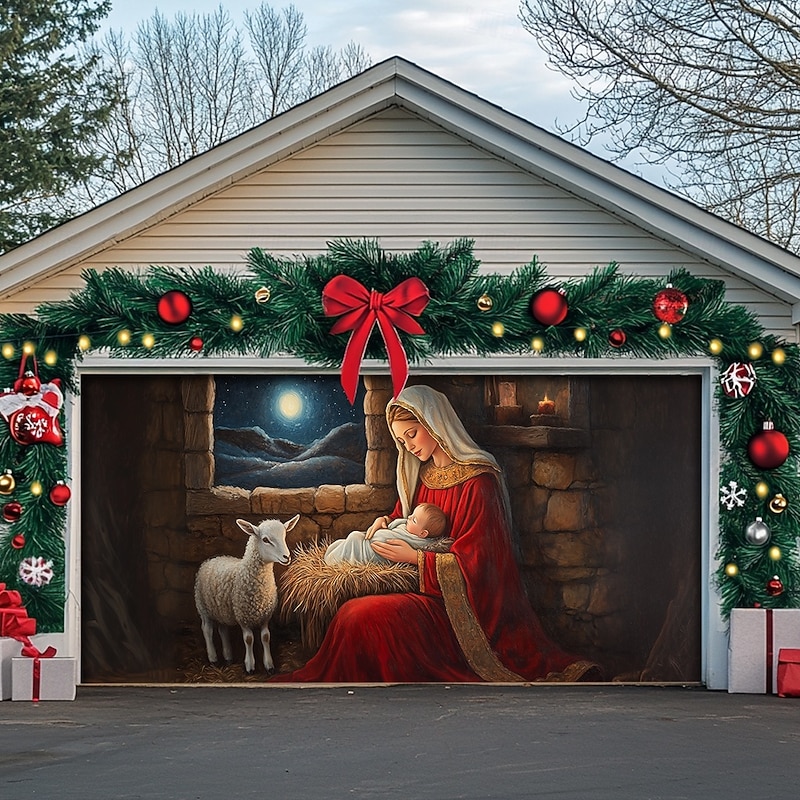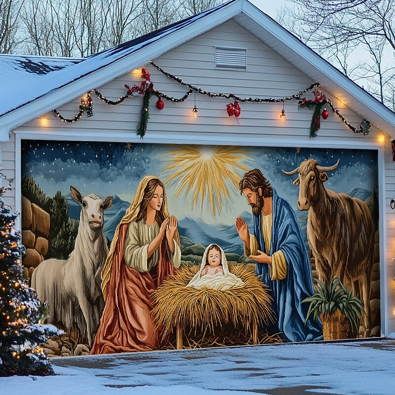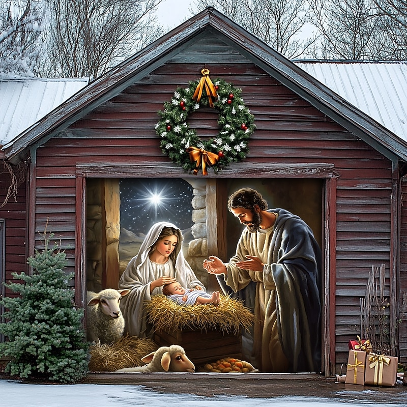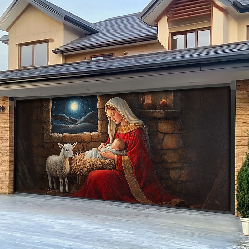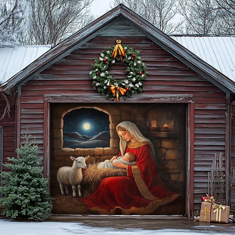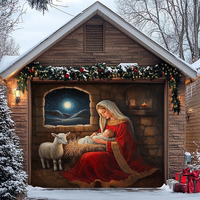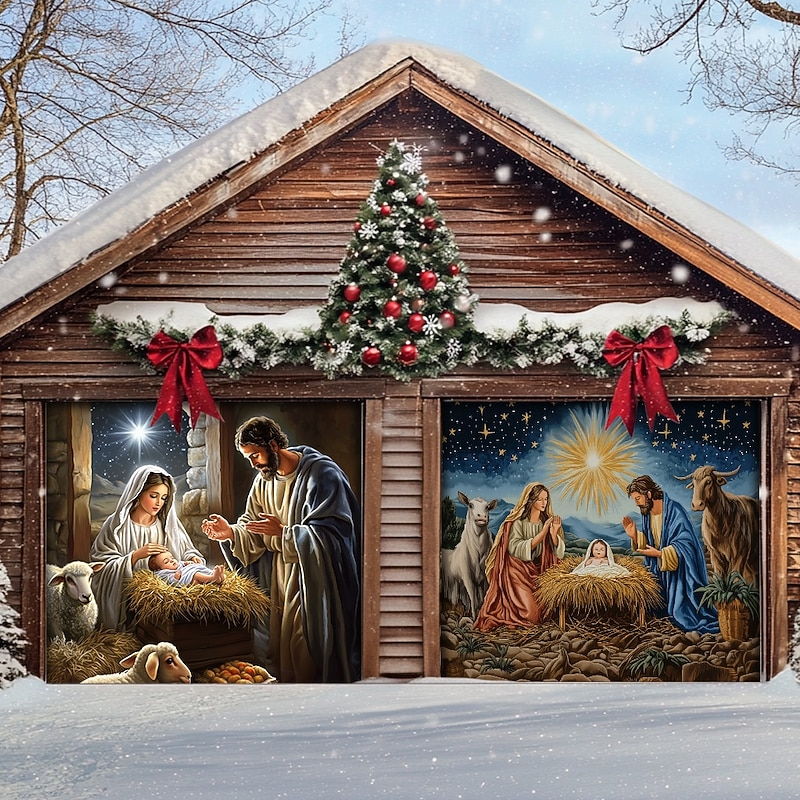 Celebrate the season with our Nativity Scene Garage Door Cover for a heartfelt and festive holiday entrance!