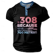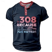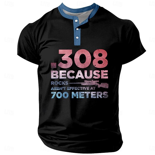 Highlights [Fabric] : This trendy men's henley t-shirt is crafted from a durable polyester fabric that provides a soft, breathable experience, perfect for the warmer months of spring and summer. The micro-elastic material ensures ease of movement, making it an ideal choice for both active and casual wear. [Fit] : Designed with a regular fit, the short-sleeve t-shirt offers a classic silhouette that enhances the wearer's physique while providing lasting comfort throughout the day. [Design Highlights] : Featuring a bold graphic and letter print, this t-shirt stands out with its 3D print design. The henley neckline paired with a button placket adds a touch of vintage charm, while the contrasting color details elevate its overall stylish appeal. A humorous and edgy statement paired with a rifle graphic makes for a unique and modern fashion statement. [Occasions] : Whether you're heading out for a casual outing, engaging in outdoor sports, or enjoying a holiday, this versatile t-shirt is the perfect addition to your wardrobe. Its fashionable and retro vintage style ensures you make a statement on any occasion. [Size Range] : Available in a variety of sizes, from S to XXXL, ensuring a suitable fit for a wide range of body types.
