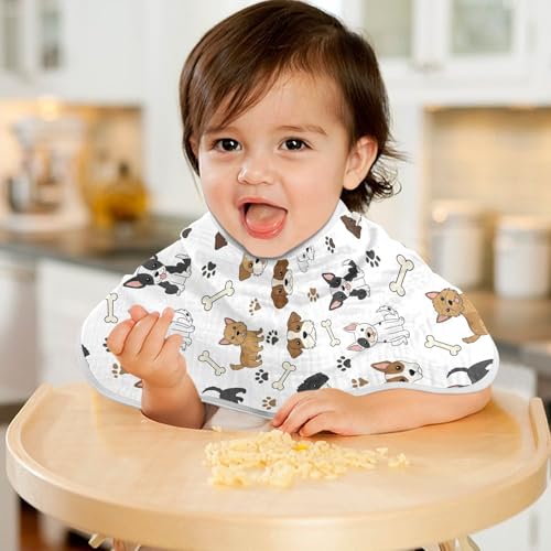 J JOYSAY Dogs Bones Paw White Baby Burp Cloths for Boys Girls Large 22''x11'' Cotton 4 Layer Baby Spit Up for Drool one sizex2 5