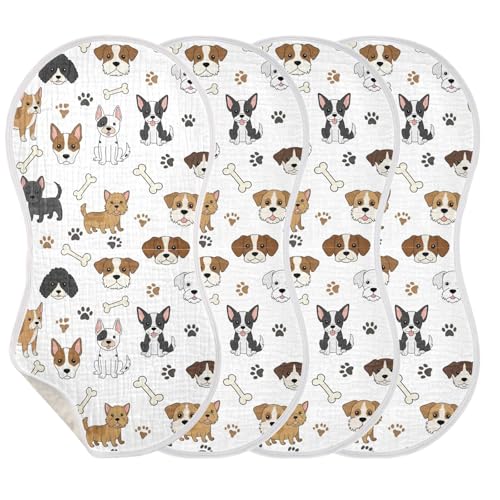 J JOYSAY Dogs Bones Paw White Baby Burp Cloths for Boys Girls Large 22''x11'' Cotton 4 Layer Baby Spit Up for Drool one sizex2 4