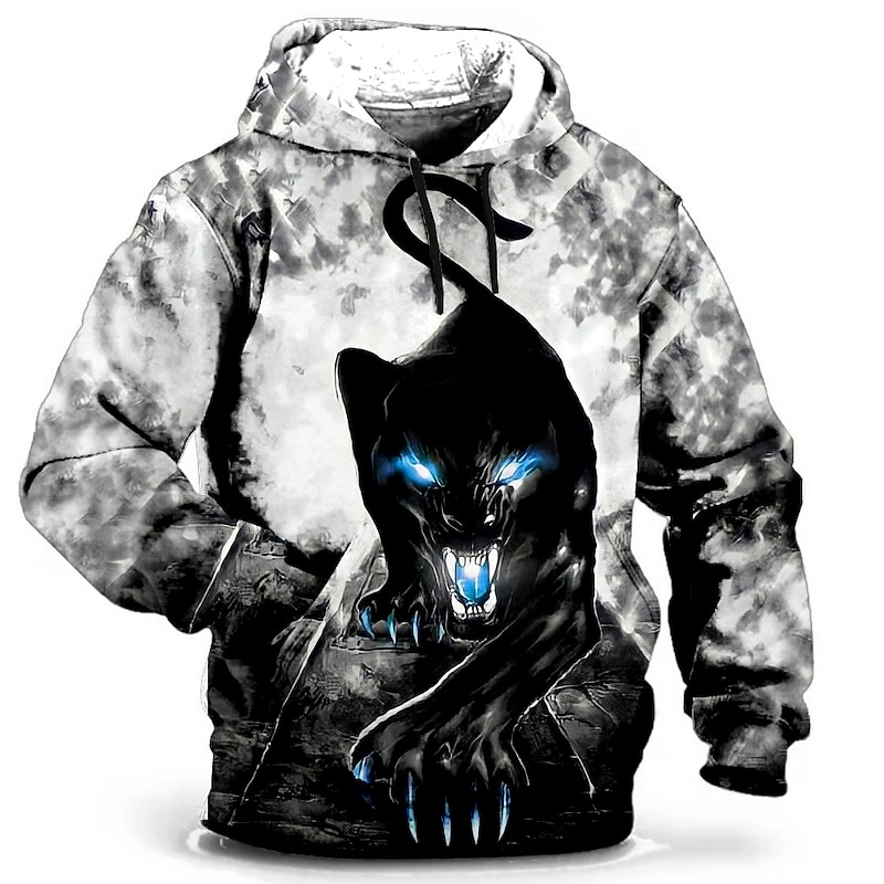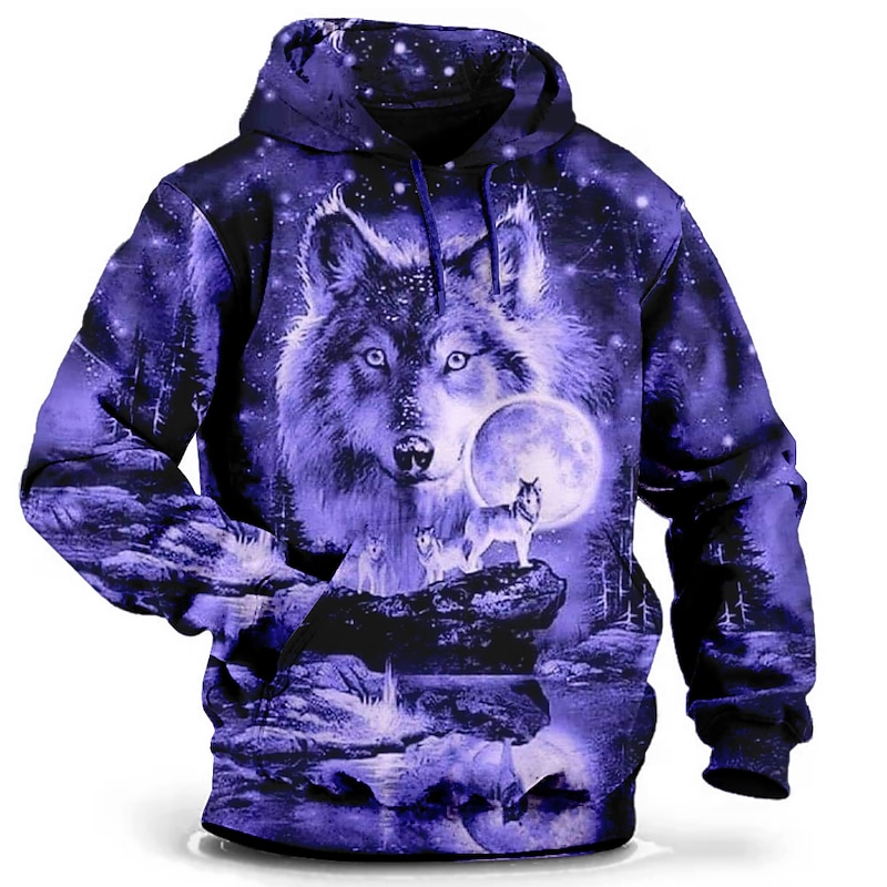 More information about Men's Wolf 3D Print Graphic Prints Hoodie Pullover Hoodie Sweatshirt Hoodies Fashion Streetwear Long Sleeve Hooded Vacation Work Daily Wear Gray Green Black and White Pocket Spring & Fall Designer