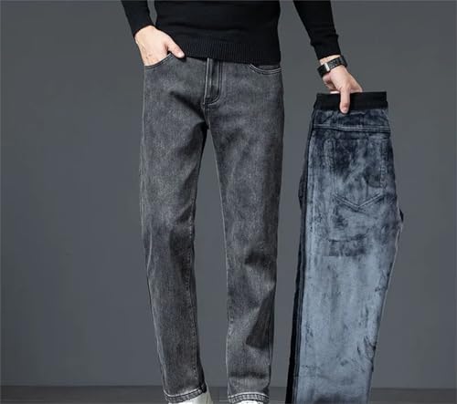 HOT ! Men's Winter Fleece Jeans Thickened Comfortable Loose Straight Denim Pants Classic Black Trousers