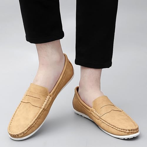 Men's Suede Leather Penny Loafers - Brushed Suede Upper, Elastic Back Collar, Non-Slip Rubber Driving Sole - Classic Slip-On for Casual Wear, Office, Driving & Weekend Adventures 6