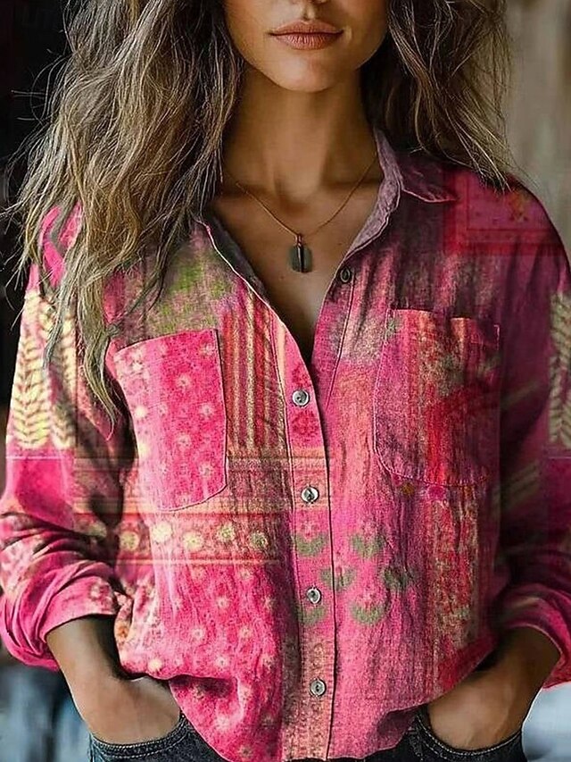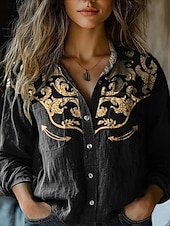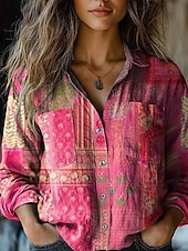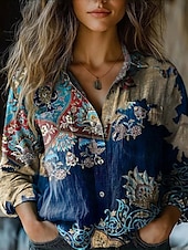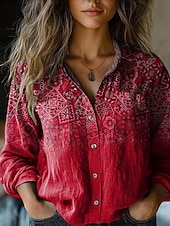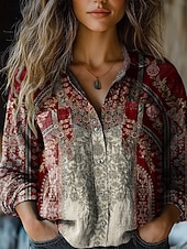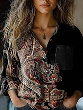 More information about Women's Shirt Floral Paisley Stylish Modern Long Sleeve Shirt Collar Regular Tops Daily Holiday Buttons Pocket Print Maroon Black Yellow Wine Red Summer